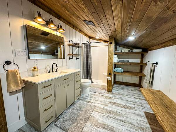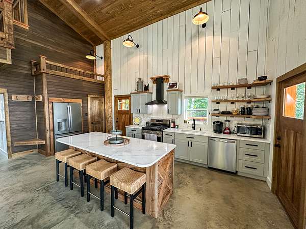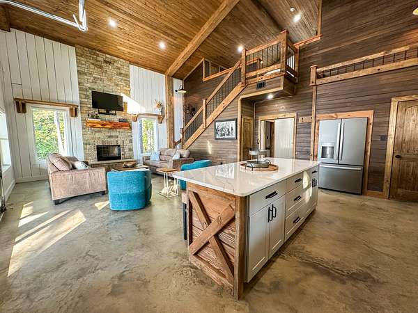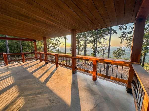 Welcome to Heaven's Ridge, a one of a kind mountain retreat perched high above the town of Heavener in Le Flore County, Oklahoma. This custom built, +/- 1,416 sq. ft., 2 bed, 2 bath cabin sits on a private +/- 2 acre lot at 1,200 ft. elevation in the Ouachita Mountains, offering some of the most breathtaking panoramic views in all of Oklahoma and Arkansas. Overlooking Heavener, Wister Lake, Cavanal Hill, and the San Bois Mountains, this property truly lives up to its name. Step inside to discover reclaimed 70 to 80 year old wood thoughtfully integrated throughout the cabin, polished concrete floors on the main level, and vaulted pine ceilings. The spacious, open concept kitchen features Sierra White veined quartz counters, a custom 4'x9' reclaimed wood island, and full size appliances. Including stove/oven, dishwasher, and a 33 cubic foot refrigerator, all of which convey with the property. The main living area centers around a stunning, floor to ceiling stone fireplace with a solid 160 lb cedar beam mantel. The primary suite and bathrooms feature reclaimed wood accents, with custom touches such as hand built pine benches and a master bed crafted entirely of reclaimed pine. Upstairs, the loft bedroom offers additional space with sweeping mountain views and integrated bunk beds built in. Enjoy the outdoors year round with +/- 1,020 sq. ft. of covered porches, complete with 3" thick cedar bar tops, oversized cedar posts, black rebar rail accents, and an overhead garage style door that frames the San Bois Mountain range. Perfect for merging indoor comfort with the beauty of the surrounding landscape. The cabin is as functional as it is beautiful, featuring a private 400 ft. water well with sediment filtration and an 80 gallon pressure tank, a 500 gallon owned propane tank powering a tankless water heater, washer and dryer, as well as a 2 ton Amana electric HVAC heat pump that can be controlled remotely with a phone app. Electricity is provided by a solar power system, with 30 roof mounted panels, an EG 4 18Kpv inverter, and dual EG4 14.3 kW batteries providing a total of 28 kW of storage. Starlink internet, excellent cell service from a nearby tower, and Ring doorbell security ensure modern comfort and connectivity without sacrificing the peace of mountain living. The property offers a circle drive with parking for 2 to 5 vehicles, easy access via a newly built mountain road, and privacy surrounded by red oaks, black oaks, maples, pines, cedars, and more. Wildlife is abundant, with opportunities for hunting Eastern turkey, black bear, and trophy whitetail deer. Nearby Wister Lake and the Ouachita National Forest provide endless opportunities for fishing, hiking, ATV riding, camping, and exploring. The location combines privacy with convenience, just a +/- 8 minute drive from Heavener, +/- 12 miles south of Poteau, +/- 40 miles to Fort Smith, Arkansas, and +/- 70 miles north of Hochatown. Runestone Park, famous for its Viking inscriptions and rich cultural history is directly below the cabin. Adding to the unique character of this mountaintop escape. This property is more than just a cabin, it's a rare opportunity to own a private retreat with endless potential. Property boundary lines will be subject to a survey. All showings are by appointment only. If you would like more information or would like to schedule a private viewing please contact Tony Cerar at (918) 671-8937 .