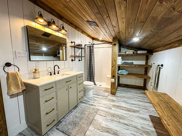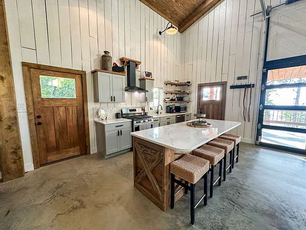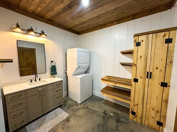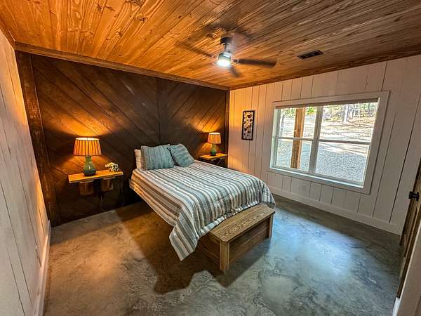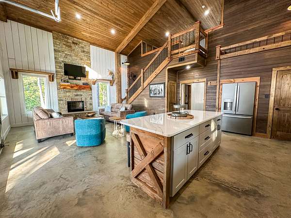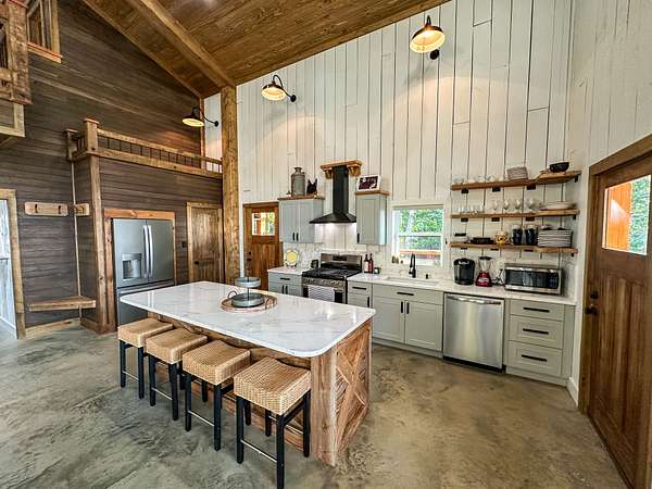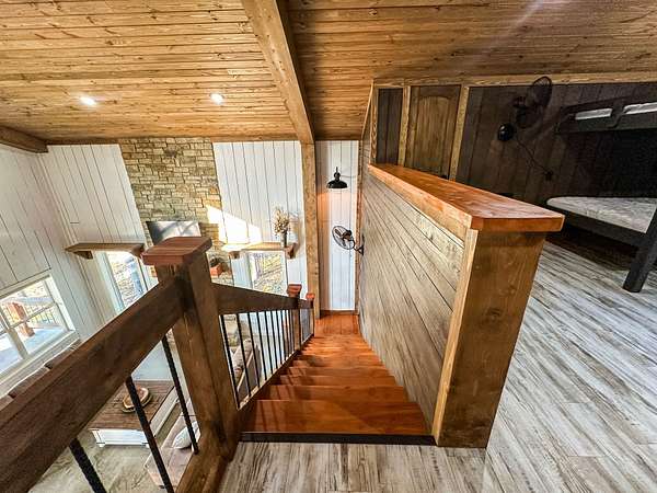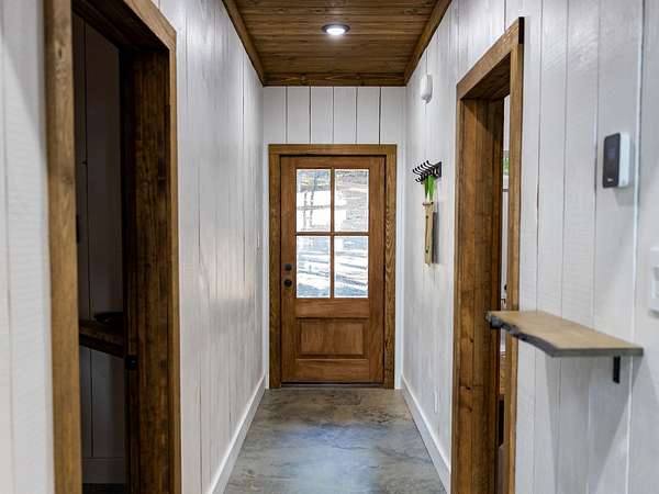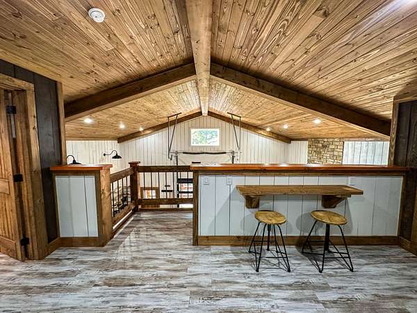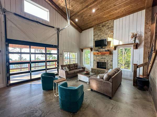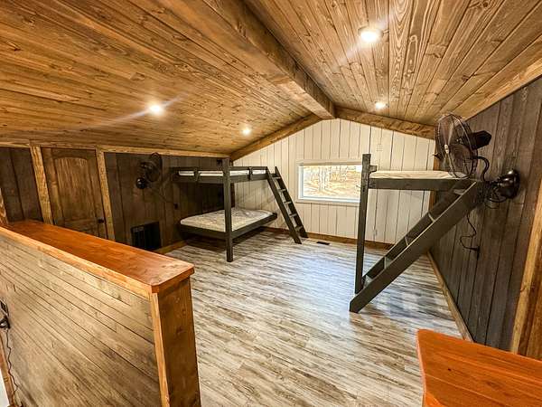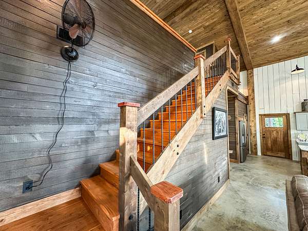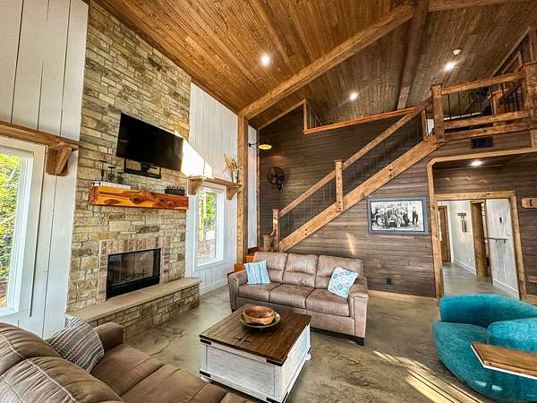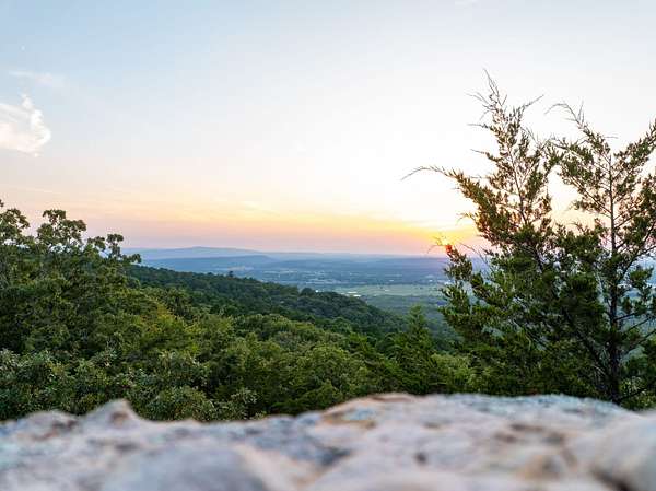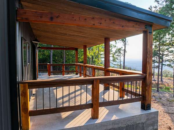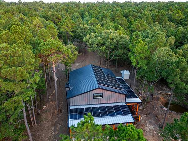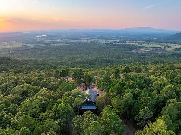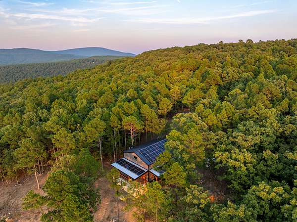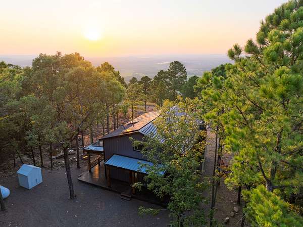 Welcome to Heaven's Ridge, a one of a kind mountain retreat perched high above the town of Heavener in Le Flore County, Oklahoma! This custom built, +/- 1,416 sq. ft., 2 bed, 2 bath cabin sits on a secluded 74.74 +/- acres at 1,200 ft. elevation in the Ouachita Mountains, offering some of the most breathtaking panoramic views in all of Oklahoma and Arkansas. Overlooking Heavener, Wister Lake, Cavanal Hill, and the San Bois Mountains, this property truly lives up to its name. Step inside to discover reclaimed 70 to 80 year old wood thoughtfully integrated throughout the cabin, polished concrete floors on the main level, and vaulted pine ceilings. The spacious, open concept kitchen features Sierra White veined quartz counters, a custom 4'x9' reclaimed wood island, and full size appliances. Including stove/oven, dishwasher, and a 33 cubic foot refrigerator, all of which convey with the property. The main living area centers around a stunning, floor to ceiling stone fireplace with a solid 160 lb cedar beam mantel. The primary suite and bathrooms feature reclaimed wood accents, with custom touches such as hand built pine benches and a master bed crafted entirely of reclaimed pine. Upstairs, the loft bedroom offers additional space with sweeping mountain views and integrated bunk beds built in. Enjoy the outdoors year round with +/- 1,020 sq. ft. of covered porches, complete with 3" thick cedar bar tops, oversized cedar posts, black rebar rail accents, and an overhead garage style door that frames the San Bois Mountain range. Perfect for merging indoor comfort with the beauty of the surrounding landscape. The cabin is as functional as it is beautiful, featuring a private 400 ft. water well with sediment filtration and an 80 gallon pressure tank, a 500 gallon owned propane tank powering a tankless water heater, washer and dryer, as well as a 2 ton Amana electric HVAC heat pump that can be controlled remotely with a phone app. Electricity is provided by a solar power system, with 30 roof mounted panels, an EG 4 18Kpv inverter, and dual EG4 14.3 kW batteries providing a total of 28 kW of storage. Starlink internet, excellent cell service from a nearby tower, and Ring doorbell security ensure modern comfort and connectivity without sacrificing the peace of mountain living. The property offers a circle drive with parking for 2 to 5 vehicles, easy access via a newly built mountain road, and privacy surrounded by red oaks, black oaks, maples, pines, cedars, and more. Wildlife is abundant, with opportunities for hunting Eastern turkey, black bear, and trophy whitetail deer. With this beautiful home sitting on 74.64 +/- acres, it provides you with plenty of ground for hunting or future development if that's what you desire! Nearby Wister Lake and the Ouachita National Forest provide endless opportunities for fishing, hiking, ATV riding, camping, and exploring. The location combines privacy with convenience, just a +/- 8 minute drive from Heavener, +/- 12 miles south of Poteau, +/- 40 miles to Fort Smith, Arkansas, and +/- 70 miles north of Hochatown. Runestone Park, famous for its Viking inscriptions and rich cultural history is directly below the cabin. Adding to the unique character of this mountaintop escape. This property is more than just a cabin, it's a rare opportunity to own a private retreat with endless potential. All showings are by appointment only. If you would like more information or would like to schedule a private viewing please contact Tony Cerar at (918) 671-8937 . Disclaimer: The boundary lines shown are approximate and are provided for general reference only. Arrowhead Land Company makes no representations or warranties, express or implied, as to the accuracy, completeness, or reliability of those property lines. Buyers are advised to obtain an independent survey to verify exact property boundaries.