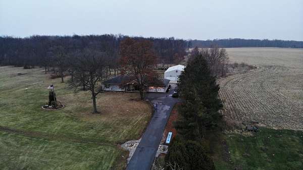 Welcome to this stunning open concept ranch on 14+ acres with an 80x42 outbuilding (FBI). This home is great for entertaining, as you enter the home you'll be greeted to a 40 x 30 open concept great room (open kitchen, dining, living areas) with custom vaulted wood ceilings to a wall of windows to nature and the 28x16 screen porch overlooking your 10 acres of woods perfect for hunter enthusiasts or nature lovers. The home has a huge master suite with w/i closet, double vanities, tile shower and free standing tub. The home has been completely updated including: an expansive quartz kitchen counter just under 13 feet long, Shaw LVP flooring throughout with tile in the powder room, laundry and second kitchen area, Generac generator that powers the whole house and pole barn, electric water heater, fiberglass double front door, custom bamboo blinds on all windows, reverse osmosis for drinking water and concrete apron near the pole barn and asphalt driveway poured in 2022. The FBI building has heat and water in the front area, plus four overhead doors (one is 13 ft and one is 12 foot) Home has double 2 x 4 exterior wall construction and Anderson windows. Only an 8 minute drive from I-65 in Crown Point and Fransican Hospital! Measurements are approximate.