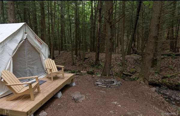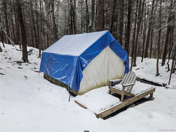 Welcome to over 11 acres of pure escape-recreational land that invites you to relax, recharge, and reconnect with nature. Set up your own glamping retreat with the existing Tentrr site, outhouse, fire pit and makeshift shower, create a hunting hideaway, or build the primary residence you've been envisioning. A picturesque stream winds through the property, adding to the serenity and natural water source with a bridge across the steam leading up to a 10 x 10 shed offering additional potential to the property. With prior approval and a successful rental history on Tentrr serving Bethel Woods visitors, this parcel also offers exciting business potential. From weekend adventures to full-time living, the possibilities here are truly endless. All of this and only 5 mins to Swan Lake where they have a medium sized pebble/sand beach and swimming area. There is a shaded picnic area and playground. Don't miss your chance to make this property yours today. Only 18 Mins to Bethel Woods Center for the Arts. Just 10 mins to NY-17. 25 mins to Resorts World Catskill Casino & Kartrite Indoor Water Park.