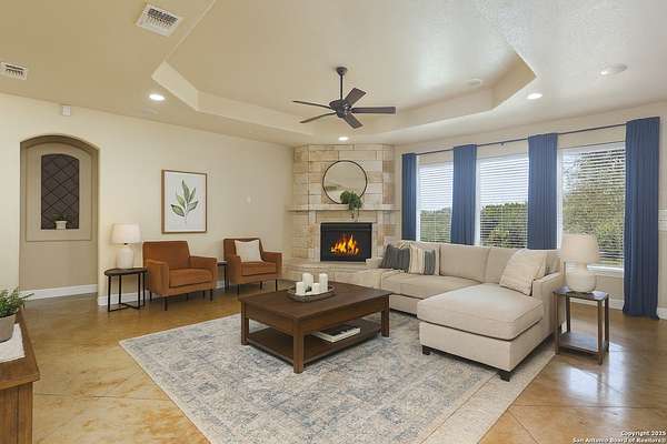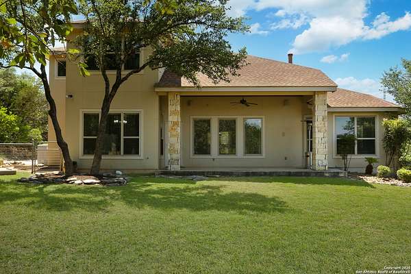 VA Assumption Available! Nestled behind the gates of the prestigious Shadow Canyon community, this exceptional Hill Country retreat blends tranquility with modern design & convenience. Positioned on over 1.5 acres of lush, private grounds, the residence offers more than 2,700 square feet of thoughtfully designed living space with soaring ceilings, refined finishes, and versatile living and dining areas perfect for both intimate gatherings and grand entertaining. The gourmet kitchen is well equipped-featuring expansive countertops, gas cooking, and separate coffee/wine bar. Walls of windows invite radiant natural light while framing views of the surrounding Hill Country, offering a seamless connection to nature from nearly throughout the home. The expansive primary suite is a private sanctuary, complete with a spa-like bath boasting dual vanities, a deep soaking tub, separate walk-in shower, and a spacious walk-in closet. Outdoors, a large covered patio invites serene mornings and sunset entertaining, overlooking a sprawling backyard with multiple gathering spaces and room to design your dream pool. Discerning buyers will appreciate the unique opportunity for flexible financing, including VA loan assumption at 4.99% or available concessions to help reduce today's interest rates. Experience luxury, privacy, and Hill Country beauty-just minutes from the conveniences of the city. Recent updates include new flooring and onsite EV charger. Private tours available by appointment. Text SAHOMES to 59559 for additional information, all photos, or to schedule a private tour!
