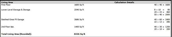 Total gross building area is approximately 8,226 square feet, consisting of two structures. The primary building contains approximately 5,540 square feet and is configured as a two story office and residential structure with a lower level automotive detailing garage and additional garage and storage space. Construction consists of a frame structure with vinyl siding, a pitched composition shingle roof, and multi pane windows. The lower level garage areas are concrete block construction with overhead drive in doors.