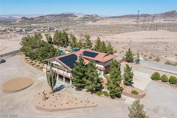 A rare and remarkable opportunity for developers and investors to collaborate on a visionary project—with seller financing available at a highly attractive interest rate. This once-in-a-lifetime offering includes two adjoining parcels totaling 2.43 acres, boasting panoramic, unobstructed views of the entire Las Vegas Valley—from Boulder City to North Las Vegas, with iconic Strip, city, and mountain vistas. Just minutes from Lake Mead, this expansive property offers the potential to build additional residences, making it ideal for an exclusive compound, luxury development, or long-term investment. The grounds feature a custom pool, lush garden areas, mature pine trees, and what is believed to be the largest Saguaro cactus in the region. The tri-level home provides two complete living quarters—one on the lower level and a second spanning the upper two. A truly irreplaceable property with limitless potential. Showings by appointment only. Do not enter without prior approval.