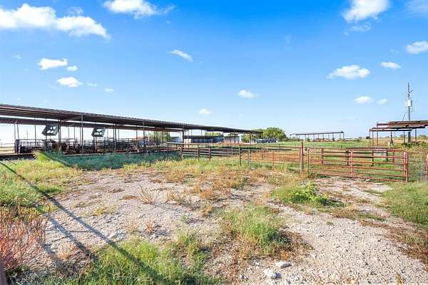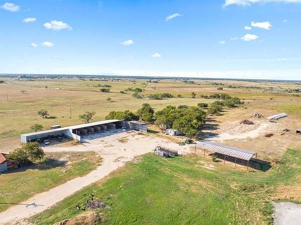 Exceptional opportunity to own a fully equipped commercial dairy on 221.944 acres in north-central Hamilton County, Texas. Conveniently located 12 miles north of Hamilton on FM 219, just 0.75 miles east of Hwy 281, this turnkey operation combines productivity, functionality, and room for expansion. The dairy is TCEQ-permitted for 2,000 total. Facilities include a 3,933 SF double10 Herringbone milking parlor, 3,500 SF covered holding pen, truck scales with 200 SF office. The operation also offers a 5,980 SF commodity barn with seven concrete bays and a 2,250 SF equipment barn. Additional features include two covered concrete feed lanes totaling over 24,000 SF, equipped with misters, stanchions, and water systems; an 8,000 SF hospital barn; nine cow shade structures totaling 52,000 SF; a 3,200 SF hay barn; and calf pens with metal sheds. The property is fenced and cross-fenced with pipe and cable, includes three wastewater retention ponds, three water wells, concrete drives, and buried water and drainage lines. Facility has maintained TCEQ compliance with upgraded retention capacity. Residential improvements include a brick home with 3 bedrooms, 2 baths, attached garage, carport, and storm cellar, plus employee living quarters. Two manufactured homes are also on-site for additional housing. The acreage consists of native and improved grasses with open pastures and functional layout for efficient operation. This Dairy presents a rare chance to acquire a high-capacity, permitted dairy with extensive infrastructure, reliable water, and housing ideal for continued dairy use or conversion to diversified agricultural operations.