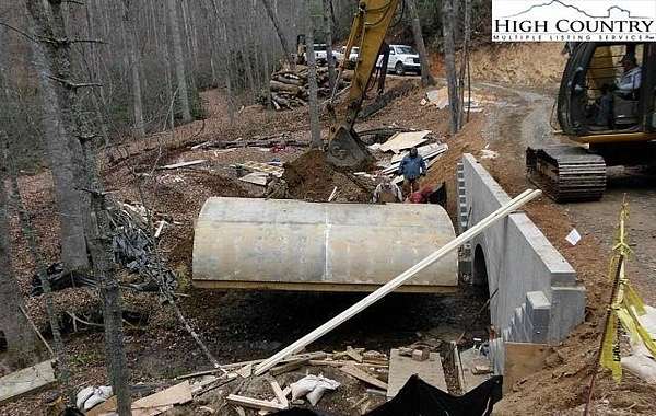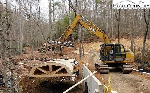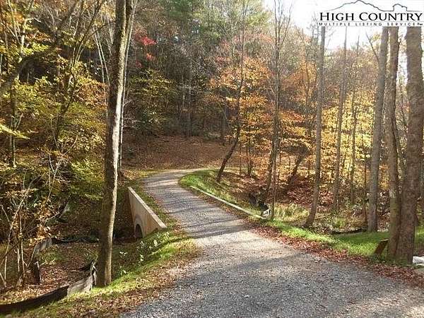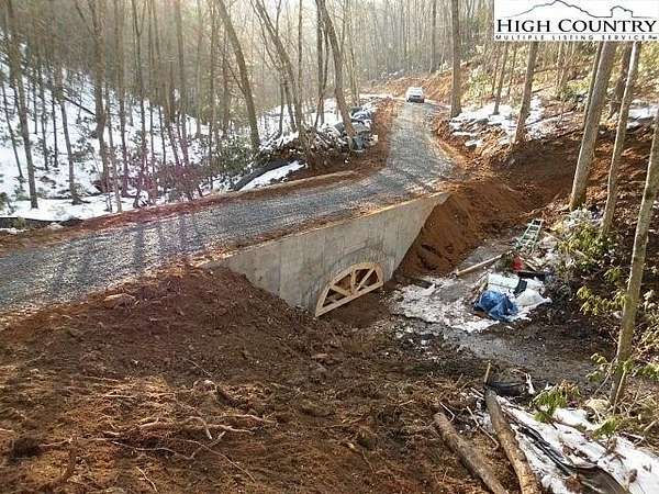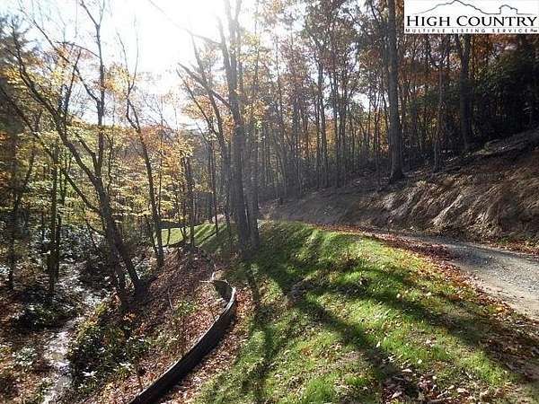 The Hidden Forest community currently has three single family houses, each on a minimum ten acre lot. This secluded little neighborhood has it all: beautiful arch bridges over meandering creeks, roadside wildflowers and abundant wildlife, owls and hawks, plus dark sky night views of the moon and stars (due to minimal night lighting). From River Road, a gravel road winds along a gurgling brook, leading to the Lot #3 private driveway, which climbs up to an exquisite cleared level homesite at the top of the hill. Southern exposure provides plenty of sunshine. The homesite has a panoramic wide angle winter view of the nearby mountains and hills. A year round view can be created with some selective tree cutting. The pristine nature of this subdivision is not marred by ugly overhead utilities. Underground electricity and fiber optic cables (internet, tv, possible landline, etc.) are located at the lower end of this lot, and can be readily extended along a hiking trail up to the homesite. A scenic stretch of the New River, popular in summer with kayakers and tubers, is only a quarter mile from the private subdivision entrance, and under a 1/2 mile from this homesite. The river is close enough to reach by bicycle or an invigorating walk, but far enough away for quiet and privacy. If this sounds like the right place for you to unwind from the stress of city life, you're welcome to check it out in person. Roughly a 15 minute drive (8.5 miles) to New Market center in Boone.