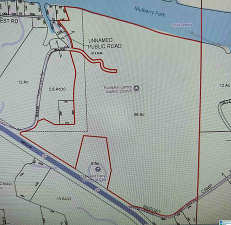 66 acres +/- with 1542' of riverfront on the mulberry fork of the black warrior river. Road frontage from 3 sides, 269 Hwy, Hidden Hollow Road, and Baggett Camp Road. Food plot established for hunting with endless wildlife. Don't miss this rare opportunity to own this much riverfront priced around $3,000 per acre. Please call before showing 205-445-3643.