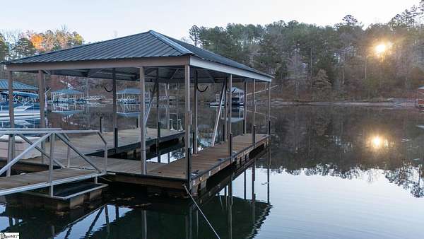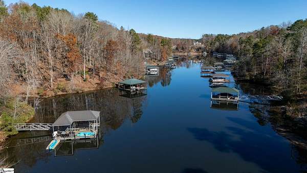 Contact Stephanie Jackson for more details! SJackson@CDanJoyner.com. Short-Term (3 nights or more) rentals allowed! Discover the perfect setting for your Lake Keowee dream home! Located in the gated community of The Hideaway at Lake Keowee, Lot 8 offers over an acre of privacy on a quiet, western finger of the lake. The community features fully paved, gently winding roads surrounded by mature woods and natural streams, creating a peaceful and secluded environment from the moment you arrive. This beautiful lot slopes naturally down to approximately 146 feet of pristine waterfront, giving you the ideal canvas for a custom lake home with views from multiple levels. A floating dock with fold down ladder and dock box is already in place, providing immediate access to boating, swimming, kayaking, and paddle boarding. The calm, protected cove is perfect for relaxing days on the water, while just a short ride takes you out to the main channel of Lake Keowee. Conveniently located only minutes from Stamp Creek Landing and approximately a 15 minute boat ride to The Lighthouse Restaurant. Or spend a day on the greens also a short drive or boat ride away at the Scenic Club & Golf Course at Keowee Key. This location balances tranquility with accessibility to dining, recreation, and amenities. If you're looking for privacy, peaceful water, and the opportunity to build exactly what you've imagined, Lot 8 in The Hideaway at Lake Keowee offers an exceptional place to create your lake-life retreat!