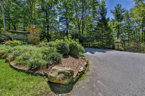 From Highlands, 64 East. Not far past Cullasaja Club, turn Right into Lake Osseroga. Go through gate (call for code). Stay on Lake Osseroga Drive Cross Bridge over small pond. Turn Left on High Pond. Lot on left just before 82 High Pond Lane.