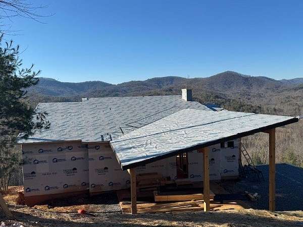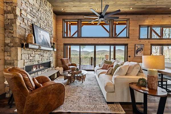 Spectacular SUNSET YEAR ROUND MOUNTAIN Views! 4br/4.5ba Impressive Mountain Modern under Construction with impeccable craftsmanship. No detail overlooked in this thoughtful floor plan! Perfect mix of modern & rustic elements with low maintenance exterior! Main floor carport covered entrance with rock accents, an open concept with great room boasting a stone fireplace, soaring cathedral ceilings, wall of windows, sliding glass doors, spacious kitchen with high end appliances, gas range, granite counter tops, island, & custom cabinets, master suite with walk in closet, custom tile shower, double vanity, one of three guest suites, half bath, & laundry room. Expansive windows all across the front to bring the amazing views inside. Covered back porch spanning length of home with exterior fireplace. Lower level provides the perfect space to entertain with game room, 2nd interior fireplace, wet bar, 2 guest bedroom suites, walk in closets + 2nd level of covered porches opening out to usable back yard perfect for a fire pit. Access from driveway to lower level with additional parking. Perfect location in gated community nestled adjacent to the Cohutta Wilderness area with tons of outdoor recreation/hiking/horse back riding/fishing. Just minutes to Downtown Blue Ridge and Lake Blue Ridge. Would make a great short term rental! Home under construction. Photos of complete home are representative of finishes.