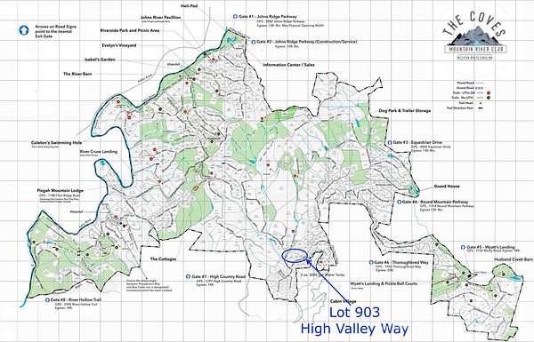 Enter the Coves gates at 1314 Round Mtn Pkwy. Turn left to stay on Round Mtn Pkwy. Right on Round Rock Rd. Left on High Valley Way. Lot 903 will be on the right. Gate code required.