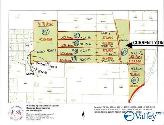 Est $786/moACREAGE - This is Listing 2 out of 7 distinct options available from this Land Plot totaling around 175 +/- acres in Jacksonville, Alabama. The expansive property spans along ample road frontage totaling 32 acres and bordering a nearby creek. This location is only Minutes to the local Walmart & Jacksonville State University. Call today for more info!