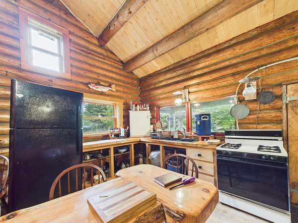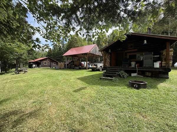 Set on just under 2 acres of leased land in the North Maine Woods on the banks of the Fish River, this property has three, fully furnished, charismatic log cabins that have been exceptionally maintained (diligently true to their original character). Combined, these cabins can accommodate up to 15 people. The cabins are all well-suited and set up for an off-grid, multi-family getaway compound. Each cabin is equipped with wood stoves, gas lights, gas refrigerators and has full kitchen setups as well as full baths. Bear Camp sleeps 7, Moose Camp sleeps 4 and Whitetail Camp sleeps 4. Also included on this property is a large, covered pavilion and several sheds and storage buildings. Non-potable, spring-fed water access is on-site, there are two permitted full septic systems, a 6,500 generator and other equipment. This property was an established set of sporting camps and also comes complete with all the guide business equipment to do some serious (or leisurely) fishing and hunting. Imagine yourself getting together with family and having the opportunity to wake up in the mornings listening to the babbling waters of the Fish River, enjoying that leisurely cup of coffee on the front porch, watching the wildlife, exploring the outdoor opportunities of the North Maine Woods, swapping tales of the day over a campfire in the evenings and making those lasting memories at this special, one-of-a-kind place.