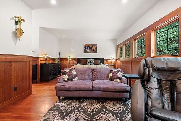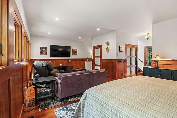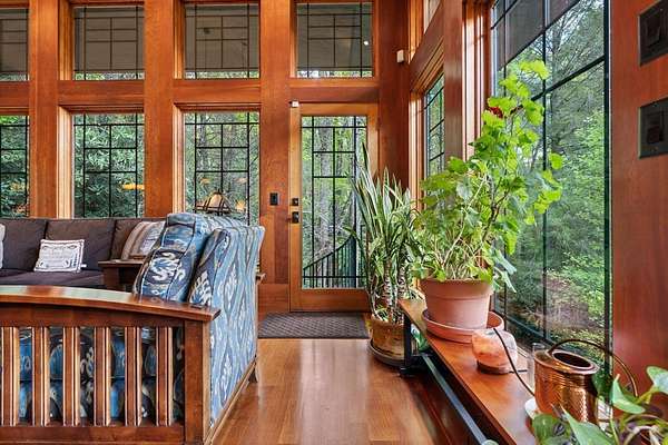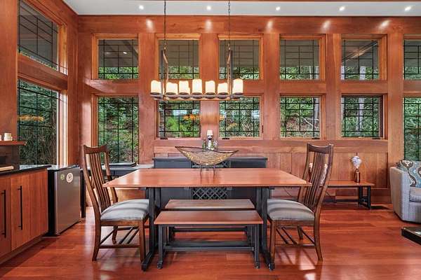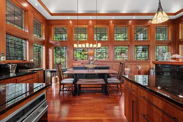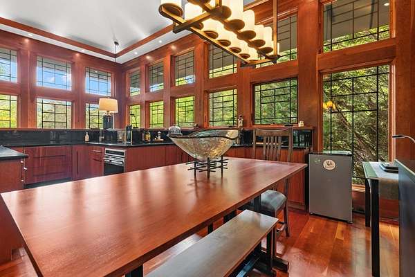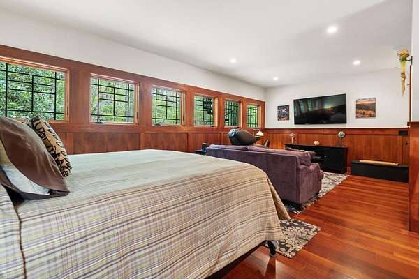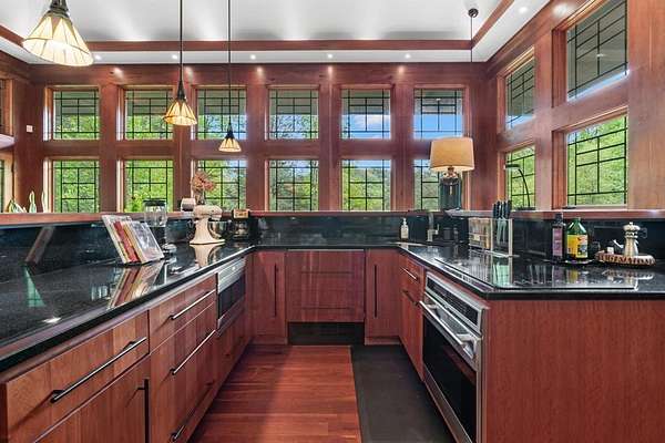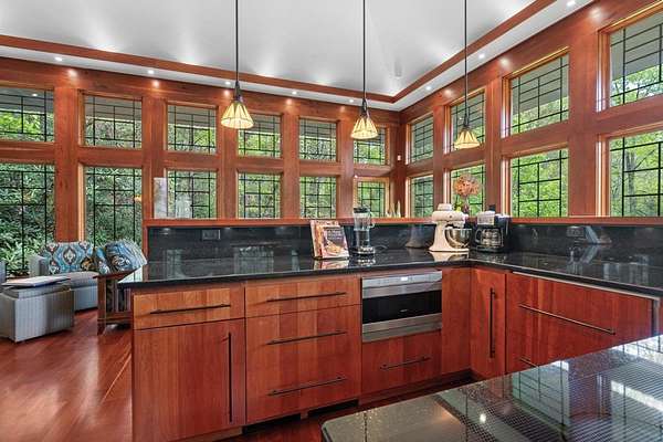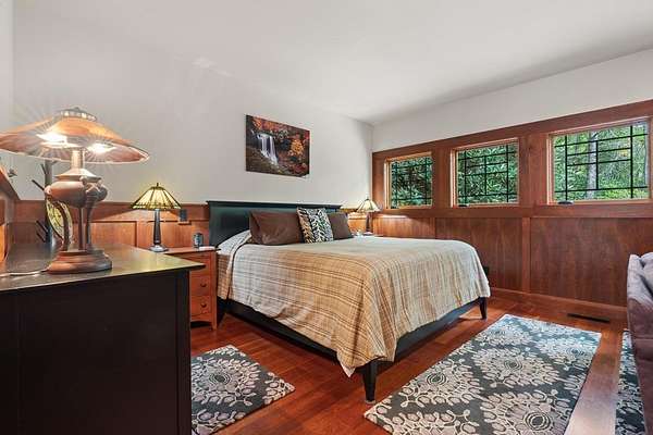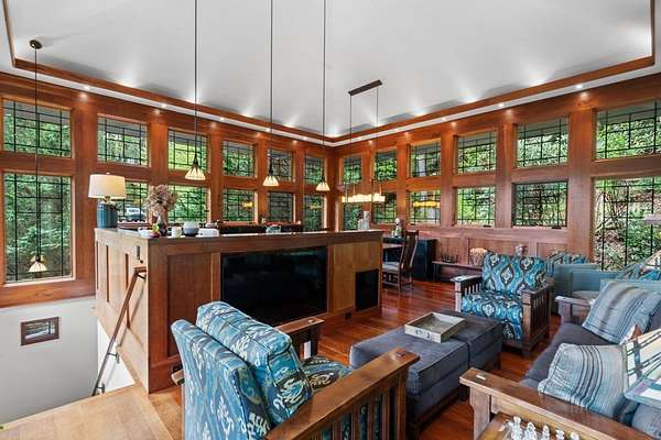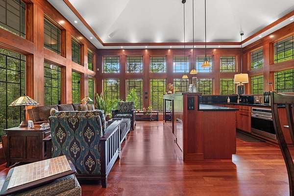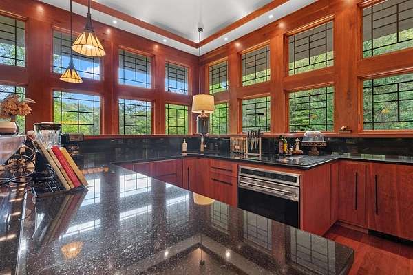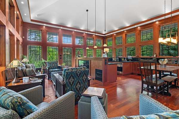 Welcome to "Secret Waters," a name that invites curiosity and promises enchantment. As you arrive, the magnificent tower house rises before you, complemented by the soothing sound of rushing waters. This exceptional residence features two remarkable elements: an architecturally designed tower house and a stunning natural wonder—a waterfall flowing gracefully beneath the home, creating a sanctuary that overlooks nature's spectacle. Every detail of this lavish residence has been meticulously crafted, showcasing exquisite cherry millwork, sleek granite surfaces, and expansive glass walls that offer breathtaking views. Venture outdoors to explore the enchanting grounds, where numerous bridges span the cascading waters, including a swinging bridge and a zip line. The unique site has served as the backdrop for countless weddings and events, generating an impressive social media presence that could lead to exciting opportunities for the savvy entrepreneur. With 5 acres of land available for additional accommodations, including a detached two-car garage, the potential is boundless. This Frank Lloyd Wright-inspired masterpiece is beautifully furnished for immediate luxurious living.