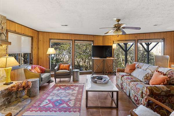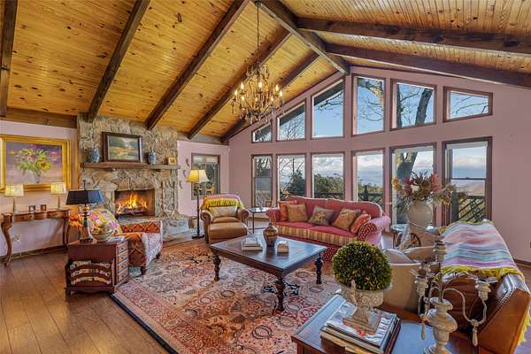 Welcome to this beautifully maintained 3-bedroom, 3-bath raised ranch, nestled within a private, gated community with an on-site caretaker. Designed for both comfort and privacy, the home sits on a spacious lot with recently updated landscaping and features its own private pond, creating a peaceful mountain retreat. The main living area showcases raised ceilings and expansive windows that frame stunning views of the mountains, filling the home with natural light. The thoughtfully designed layout offers generous living spaces ideal for everyday living or entertaining. Community amenities include a tennis court, swimming pool, and stocked trout pond, offering a resort-like lifestyle just outside your door. The two-car garage provides ample parking along with a large open storage area, perfect for outdoor gear or workshop space. Recent updates add peace of mind and modern convenience, including newly updated washer and dryer, hood vent, stove, and dishwasher. The exterior has been freshly repainted, and the roof was replaced in 2022, ensuring long-term durability and curb appeal.