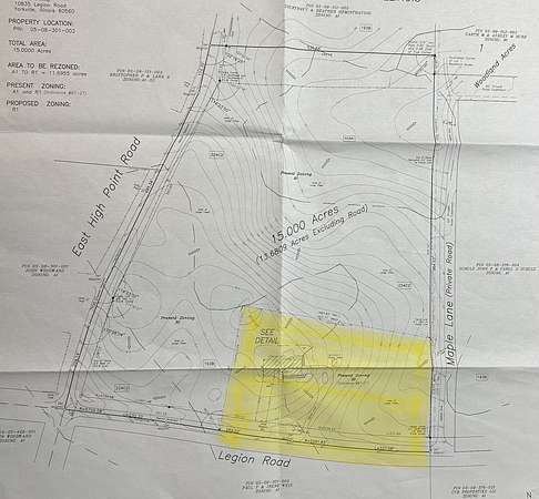 It is hard to come by buildable, wooded acreage but here it is! The price shown is for the absolute minimum lot size of 3.2 acres m.o.l., owner is asking $54,9000 an acre, with a total of 11.5 acres available to purchase. The land includes the highest point in Kendall County, is already zoned residential and can be split depending on how much land the new owner desires since no lot lines have been created yet, potentially up to 3 lots available. There are several options for walk-out basements and two spots that ponds might be dug. This land is conveniently located just outside the city limits of Yorkville and enjoys the tax benefits of unincorporated county living. Utilities are nearby, well and septic would be required, new PIN number(s) and address(es) will be created at closing, use the intersection of Highpoint Road and Legion Road for mapping purposes.