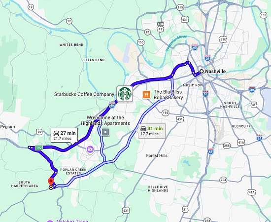 Located in a quiet rural setting just minutes from Bellevue, this property offers privacy while still being close to everyday conveniences. The Trace Creek retail area and Kroger shopping center are approximately 4 minutes away, with Publix grocery store about 5 minutes from the property. Additional shopping, restaurants, and services are easily accessible in Bellevue, Belle Meade, Franklin, and Nashville.