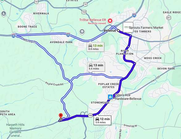 Healthcare is also convenient with urgent care about 6 minutes away and TriStar Bellevue ER approximately 15 minutes away.