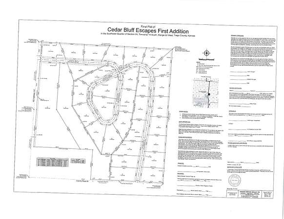Cedar Bluff Escapes is a new opportunity to own one or more lots each consisting of 3 to 3.8 acres and build the cabin or lake home of your dreams! Located within a 1/2 mile of Cedar Bluff Reservoir and right next to boat storage and a full service boat repair, tackle, and bait shop. One can build and design their dream property and have the privacy of 3 acre lots combined with HOA maintained roads.