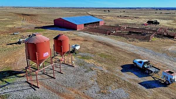 The ranch headquarters is conveniently located along Highway 148 between Henrietta and Petrolia. Improvements include a large barn with enclosed space and loafing areas suitable for horses or cattle. Adjacent pipe corrals are fully equipped with a loading alley, dipping vat, working chute, and scales, creating an efficient livestock handling setup. Fencing throughout the ranch is in good to excellent condition, with multiple divided pastures and pipe-gated entrances. Electrical service is available at the headquarters, along with two overhead bulk feeders for livestock.