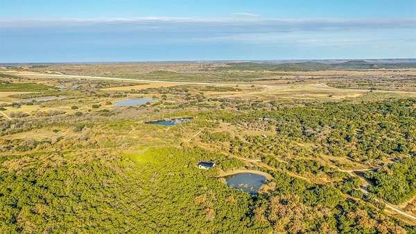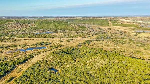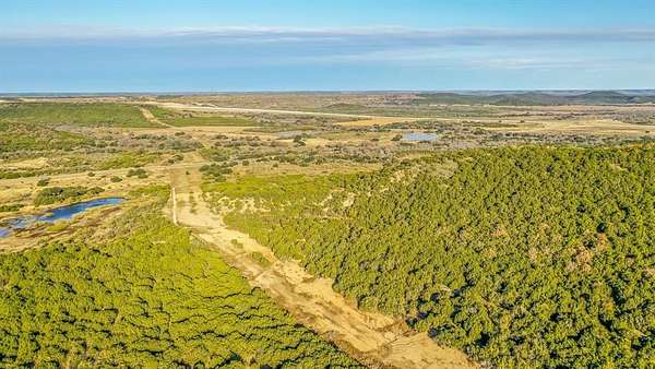 The land features dramatic elevation changes, rolling hills, and incredible long-range views across the surrounding countryside. The property is heavily wooded with cedars, mesquites, and mature oaks, offering privacy, wildlife, and attractive homesites. The terrain provides a scenic setting that appeals to buyers wanting space, seclusion, or a recreational retreat.