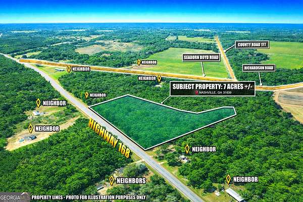Ready to build on acreage with highway frontage in Nashville, GA? This 7-acre residential tract in Berrien County offers approximately 700 feet of direct frontage on Highway 168, providing both visibility and convenient access. The land is flat and mostly wooded, with about 2 acres previously cleared and the remaining acreage naturally regrown, allowing flexibility for homesite placement and privacy. Zoned residential, this property supports a private custom build, small homestead, or long-term investment. No utilities are currently in place, giving buyers the ability to design well, septic, and power systems to meet their needs. Located just minutes from downtown Nashville, approximately 25-30 minutes from Valdosta, and within reach of I-75 and Moody AFB, the property offers rural space with regional connectivity. Nearby attractions include the Alapaha River and Reed Bingham State Park for boating, fishing, and outdoor recreation. Whether you're ready to build now or secure acreage for the future, this Nashville, GA property delivers road frontage, flexibility, and long-term value in a growing South Georgia market. Contact us today to schedule a showing!