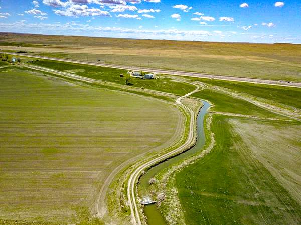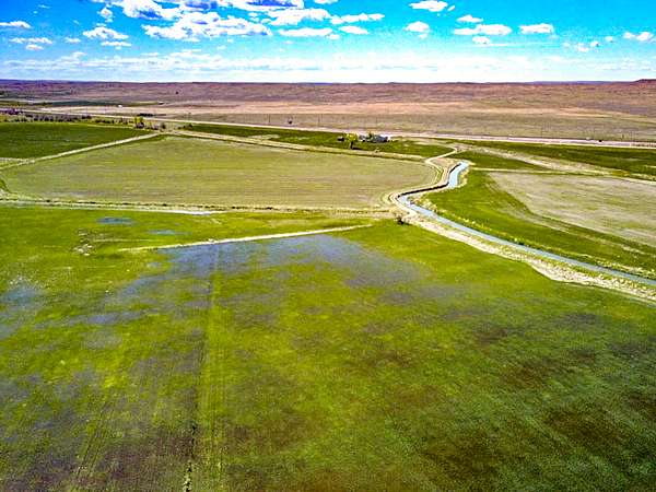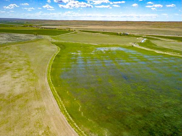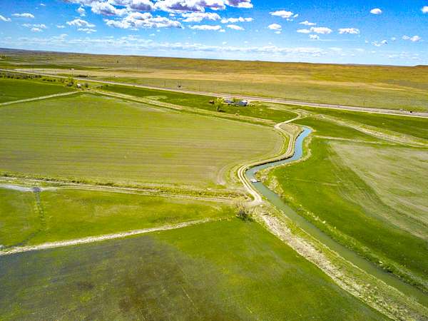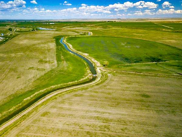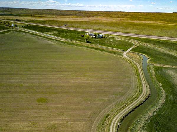 2 and Dehy Road. The property offers a combination of flood irrigated and dryland acreage, making it well-suited as an investment property or hay base for a larger agricultural operation.