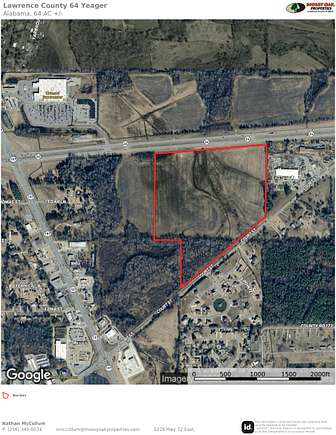 The property spans 64+/- acres and offers a fantastic chance for development in the rapidly growing North Alabama market. There is a pressing need for new housing options in the immediate area, including single-family homes and apartments, making this location an ideal starting point for such projects.