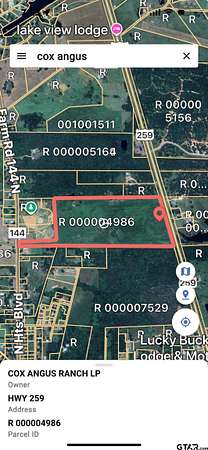 Est $3,648/moWhat an awesome 58 beautiful and highly improved pasture with a pond and with over 1000' feet of road fr144ontage on Hwy 259 and an entrance at the West end of the property on Fm 144 North on the south side of the ballfield. Super location and great for Horses, Cattle, Hay, Development opportunities or building your perfect dream ranch!
