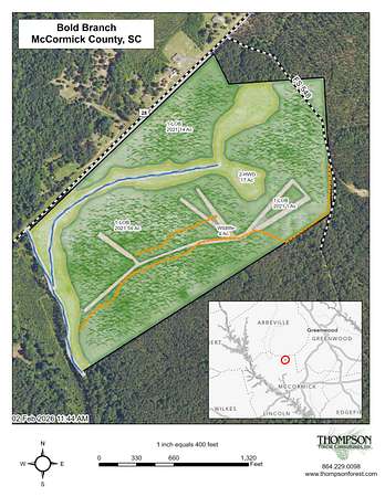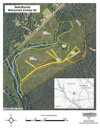 One of the more intriguing listings we have seen. A small creek grows in the middle. The property entrance tucks away along an often overlooked Forest Service road. The creek offers one of the best opportunities available for constructing a central fishing pond. The land lies adjacent to the Sumter National Forest. The Sumter National Forest offers stability in today's highly competitive land market. Bold Branch borders to the south, one-half mile of Highway 28 borders to the east, private timberland to the north, and lands of the United States Forest Service lie to the east! Hunting lanes overlay row-planted loblolly pines, easy for deer and rabbit hunting, while the timber grows. This property is McCormick County Parcel ID 081-00-00-001. Unless agreed upon, hunting stands and other equipment will not transfer.