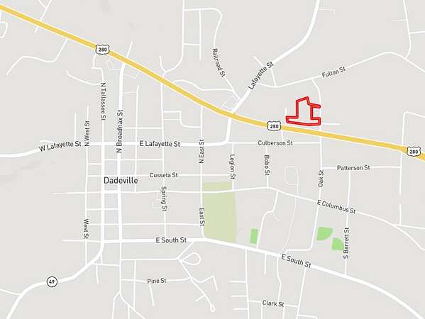 Est $1,429/moPrime Highway 280 Commercial opportunity, zoned C-3. Check out this 2.93+/- acres just minutes from downtown Dadeville with 535+/- foot of Highway 280 frontage. Multiple ingress/egress points with frontage on both East and West sides - Whatley and Oak Street, respectively. Perfect for your business endeavor, with power, sewer, and water all nearby. Survey on file, call for a showing! Buyer should confirm utilities available. Do not enter property without permission from listing agent, property shown by appointment only.