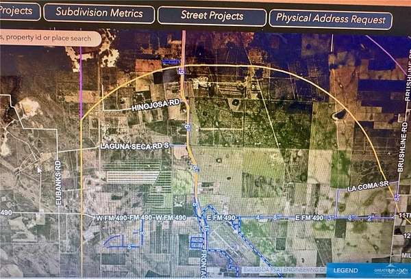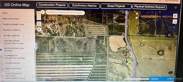 Bring All Offers. For Sale 61 acres with approximately 775 ft of US-281 frontage. Located on the SW corner of US-281 and Laguna Seca Rd. With easy highway access and within minutes of city amenities, this property offers great potential for farming, ranching, or future sub-development. Flat, open terrain suitable for various agricultural uses. Acreage has been utilized to plant and harvest Sorghum. Perfect for investors, developers, or agri-business owners. City of Edinburg GIS Mapping shows a 2' water line located north of land along Laguna Seca Rd as well as a 6" water line along US Hwy 281. Land is located within City of Edinburg's 3 1/2 mile ETJ radius.