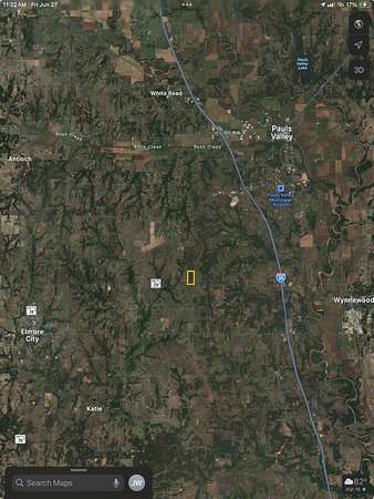 Est $1,300/moThe property has 640 ft of HWY 29 frontage with a nice almost 1 acre pond. There is rural water just 725 ft from the property and electricity runs on the front of the property. There is 20 more acres that is connected that can be bought as a whole or in 10 acre tract's. This 30 acre tracts set right between Elmore City and Wyneewood 7 miles either way. Just 3 6/10 to I-35 or 10.5 to Pauls Valley. Lines on pictures not a survey just for referance. There is an OWNER CARRY OPTION.