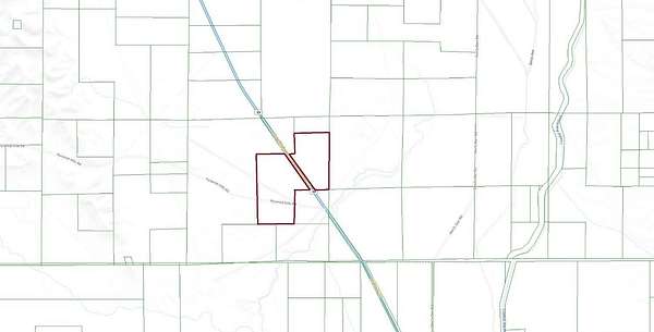 41 and 33 you will see a redlight and a gas station/rest stop Trading Post. Go South on the 33 and roughly 6.5 miles the property right of you just before you turn on Pyramid Hills Rd. Pyramid Hills Rd does run through the 85 acres.