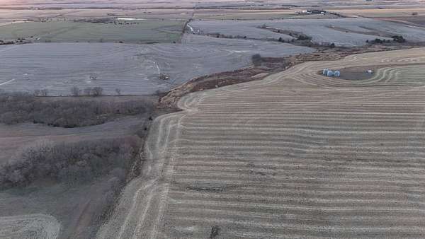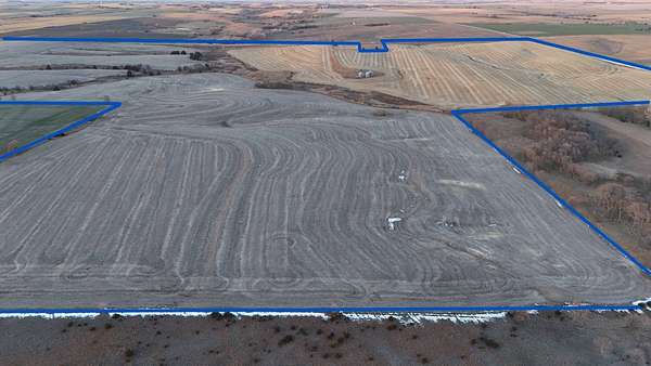 This 346+- acre Jewell County farm is a single contiguous tract that combines productive dryland cropland, natural drainage features, and excellent all-weather access. The property has highway frontage along the entire north boundary with county road access on both the east and west sides, allowing multiple convenient entry points for large equipment and grain hauling. This three-sided road access supports efficient day-to-day farming operations and adds long-term appeal for both operators and investors. There are 339.15 FSA crop acres, of which 305.35 acres are currently in row crop with the balance in grass. Overall, the farm presents a strong blend of open, highly farmable upland acres and complementary bottom and drainage ground within one large, continuous unit. The combination of extensive road frontage, efficient field layout, and solid soils makes this property well positioned as a scalable addition for an expanding farming operation or as a sizeable, income-producing land investment in north-central Kansas. A small 30-foot square area located in the northeast corner of the NW 1/4 of the SE 1/4 is owned by a neighboring landowner. It has been farmed together with the property and is included in the FSA crop acres, but it is not part of the land being sold.