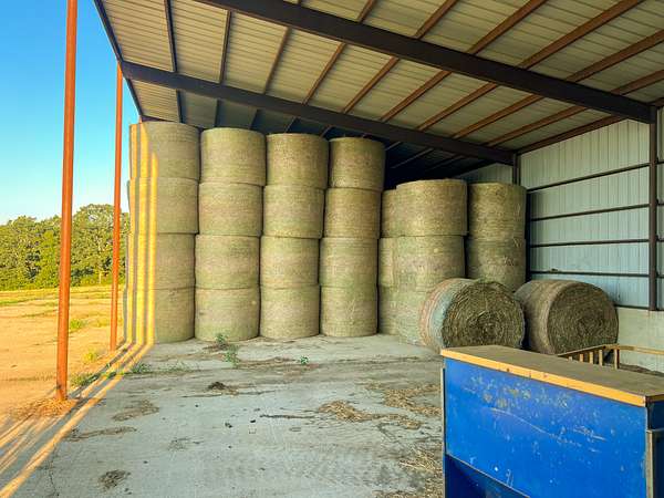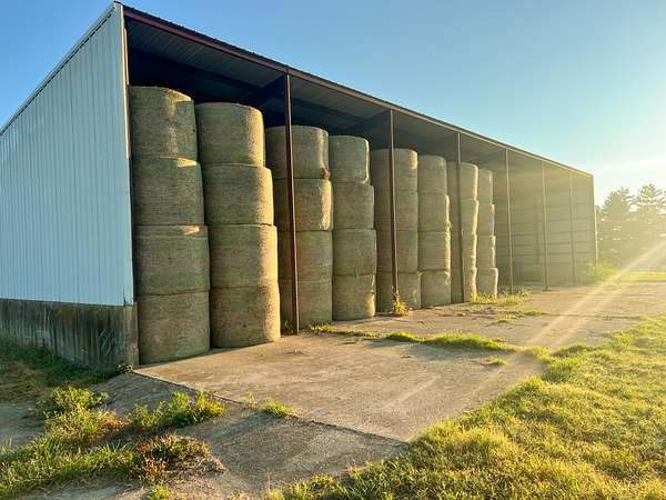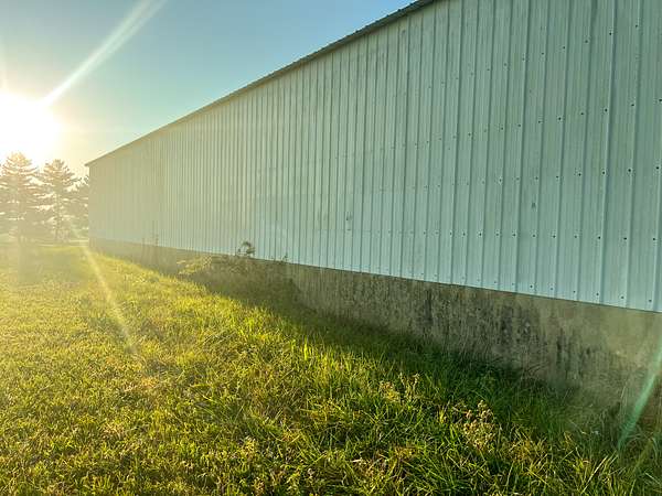 A 30'x90? red iron building with a concrete floor and a 20'x90? concrete apron in front of the building. Over 18? tall at the high side of the building making it perfect for hay storage, a machine shed, or a commodity shed as well.