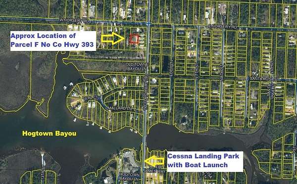 From Hwy 98 in So Walton, Turn North on Co Hwy 393. Continue North over Bayou, Just Past Cessna Landing, Look For 4 Elevated Homes on Left (West) Side. You will see house at 2015 Co Hwy 393 N on Left, there is a Driveway/Easement to the South of this House. Turn Left onto this Driveway. Behind the Homes that are on Hwy 393 You will See a Wire Fence, Parcel F is to the North of Fence with Sign!