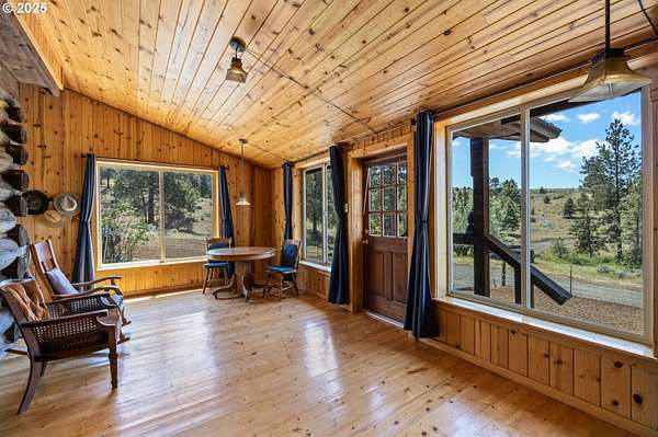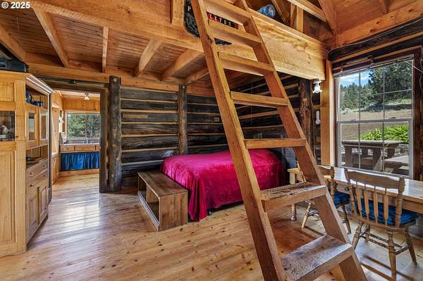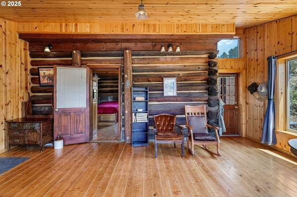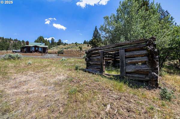 Once in a generation chance for historic homestead. Close-in but secluded hunters paradise with habitat for deer, elk, coyote, grouse, quail & turkey. 377 acres with perimeter fencing, 4 developed springs, corral, state highway access via 3 approved sites.The property features rolling hills with mixed conifer/juniper stands and pasture with grassy uplands above basalt cliffs. Multiple potential homesites, improved good quality gravel all weather roads.1870's log cabin lovingly restored to cozy modern standards. Full foundation, solar lighting, 1200 gallon spring fed cistern, gravity fed to Cabin. Full bathroom, with beautiful porcelain clawfoot tub & shower. Approved standard septic system installed. Bonus features: Jotul wood stove, knotty pine Great Room w/huge picture windows and Fuego wood furnace, new propane refrigerator & enclosed outdoor shower with panoramic views.All improvements have appropriate mechanical, plumbing, septic, building & facilities permits.