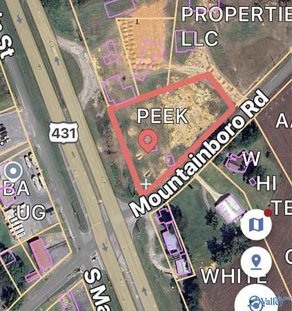 Est $2,119/mo1.4+/- Acres Commercial Corner Lot at red light of Hwy 431 and Mountainboro Rd. Zoned B3 Commercial. High Traffic Count Great building lot for any type of business. 200 Triaxle Loads of Fill dirt and all prep work was just done Lot is ready to build on.