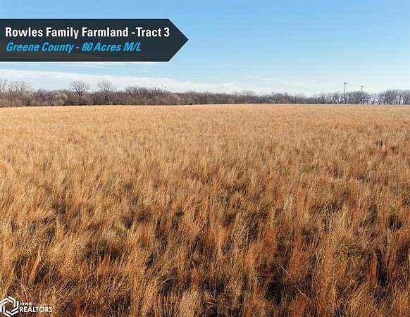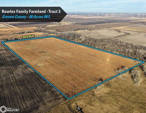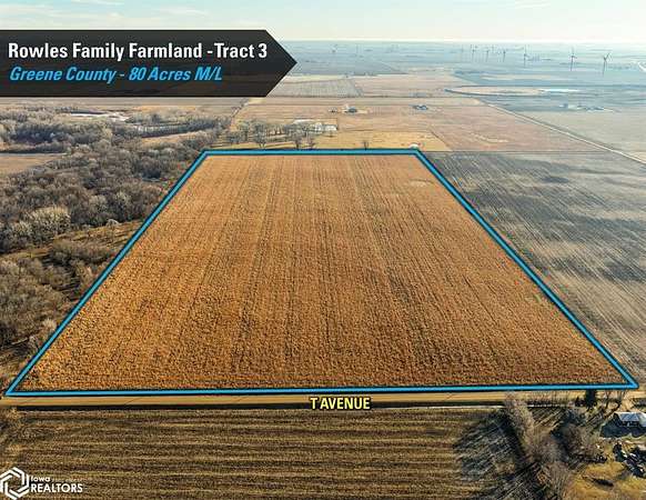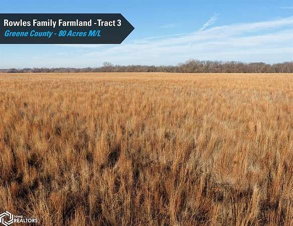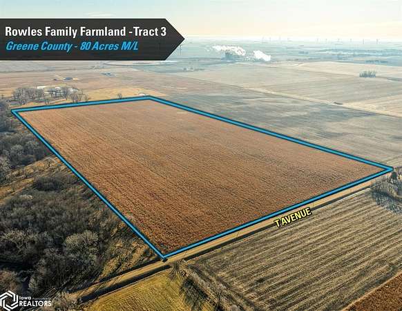 Greene County, Iowa Online Only Farmland Auction - Wednesday February 18th, 2026! I'm pleased to be representing the Rowles Family in the sale their family's 300 acres m/l. Offered as three individual tracts, these farms are located northwest and southwest of Grand Junction, Iowa in Sections 7, 20, and 29 of Junction Township, Greene County, Iowa. Tract sizes range from 63.80 acres to 156.20 acres and would make for great add-on tracts to an existing farming operation or an investment for the Buyer looking to diversify their portfolio or hedge inflation. Tract 1: 63.80 acres m/l with 62.12 FSA cropland acres and a CSR2 soil rating of 78.7 Tract 2: 156.20 acres m/l an estimated 149.55 FSA cropland acres and a CSR2 soil rating of 61 Tract 3: 80 acres m/l with 79.35 FSA cropland acres currently enrolled in the Conservation Reserve Program (CRP) with an annual payment of $18,340 These tracts are located in a strong farming community with several grain marketing options located nearby, including the Louis Dreyfus ethanol plant located within four miles of each tract. The farms are leased for the 2026 growing season and the Buyer(s) will receive the 2026 rent payments. The payments will be made this spring after closing and on September 1, 2026. Yield history is available upon request, contact the listing agent for more information. The farms lie on or near paved roads. Visit our website for more information regarding this 3 tract Auction.
