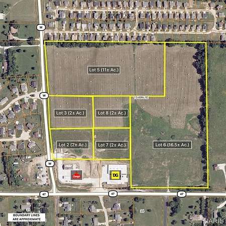 Prime 2.3+/- Acre Site in High-Growth Lincoln County! Ready-to-Develop--The Perfect Canvas for Your New Commercial, Retail, or Multi-Family Development. Your search for a shovel-ready development site ends here. This commercial parcel is perfectly positioned in a rapidly growing area of Lincoln County, offering good access and visibility. Surrounded by over 5,000 existing homes within the Troy School District, the site guarantees immediate demand for your project. All utilities are available, significantly streamlining your construction timeline. The site is part of a successful 41+/- acre development anchored by national names like Casey's General Store and Dollar General. Access to this lot will be from a new street planned off Hwy W. It's ideal for developers targeting the thousands of families in the surrounding area. Priced at $100,000 per acre, this is the prime setting to expand your footprint in Lincoln County. Sale will be based on actual survey and acres; you have the flexibility to increase the size of this lot with additional acreage available.