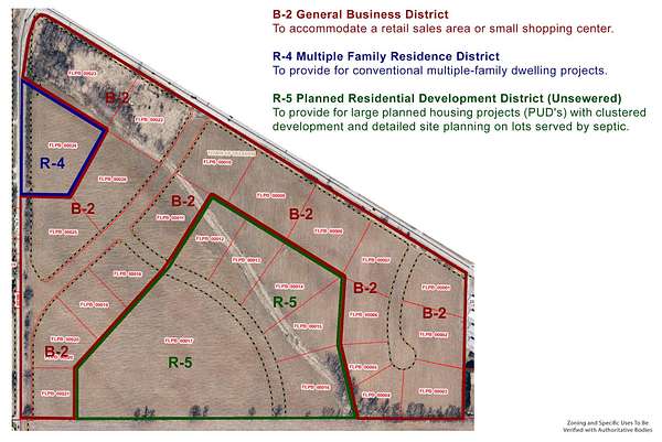 Est $20,505/moGroup One of the Lake Prairie Retail Park includes 21 pre-divided parcels. Lake Prairie Retail Park presents an exceptional opportunity to serve the rapidly growing demand of the entire Lake Geneva area. Spanning 66 acres this development includes 26 mixed-use commercial and residential parcels. Zoned B-2, R-4, and R-5, supporting a blend of retail, service and residential uses. Strategically positioned on a prominent corner Lake Prairie offers 2,600+/- feet of frontage along Highway 50, one of Walworth County's major thoroughfares, and an additional 2,000+/- feet of frontage along Hwy F, the main road between Delavan to Fontana and Williams Bay. Lake Prairie Retail Park stands ready to become one of the region's premier destinations.