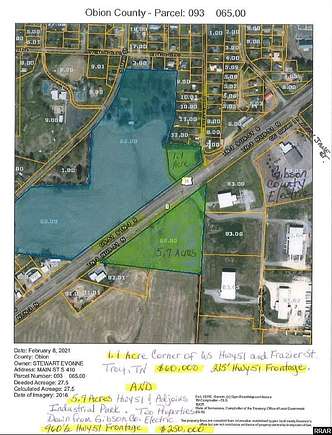 Est $1,826/mo5.7 acres of Prime Commercial Land located on Hwy 51. Adjoins Troy Industrial Park and 2 properties down from Gibson Co. Electric. 960'Road Frontage on US Hwy 51 No Zoning Change Required * Property taxes to be determined after sale * Property currently being farmed. *Possession TBD