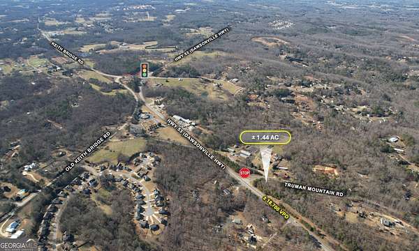 PROPERTY OVERVIEW This 1.44-acre pin corner is well situated for a small commercial development in this emerging commercial node surrounding the intersection of Keith Bridge Road and Highway 53. The access will most likely have to be along Truman Mountain Road. The subject property is located directly on Dawsonville Hwy (Hwy 53) with excellent visibility and over 390' feet of road frontage. Site has an additional 480' feet of frontage along Truman Mountain Road with a minimum of 1 full access curb cut. The topography is level to gently rolling and sits above grad from Highway 53 and at grade along most of the Truman Mountain Road Frontage. Site is well situated for a neighborhood commercial use servicing the immediate market. LOCATION OVERVIEW The property is strategically located between three major commercial hubs: North Georgia Premium Outlets along GA-400 in Dawsonville, Dawsonville Highway (SR 53) retail corridor in Gainesville, and Cumming City Center. The site sits along the primary connecting routes between these established retail and mixed-use destinations. Convenient access to GA-400 provides direct north-south connectivity to Alpharetta, Forsyth County, and metro Atlanta. Avalon in Alpharetta and Halcyon in South Forsyth are both approximately 30 minutes south along the GA-400 corridor. The property is well positioned as a commercial development within an expanding residential growth area in central and northern Forsyth County. Development continues to extend into Dawson and Hall Counties. OFFERING SUMMARY * Asking Price: $575,000 * Land Area: 1.44 Acres * Zoning: CBD - Central Business District * Utilities: All Utilities Except Sewer (On-Site Septic System Required) * Dual Road Frontage: 390' on Highway 53 & 480' on Truman Mountain Road * Traffic Exposure: 18,700 VPD along Highway 53 * School District: Chestatee Elementary | Little Mill Middle | East Forsyth High