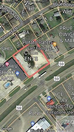 Est $614/moPrime Commercial Property on US 59 Corridor in Atlanta. 21,000+ vehicles per day. .689 Acres. Located between the Travel Inn & Suites Hotel and Potato Patch Restaurant.