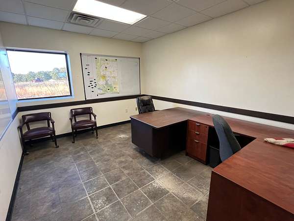 The main building features 5,000+/- sq ft of showroom and office space, perfect for customer-facing operations or administrative needs. A 3,040+/- sq ft shop building provides ample room for equipment storage, repairs, or light manufacturing. An additional 1,000+/- sq ft office adds flexibility for expansion or separate business operations.