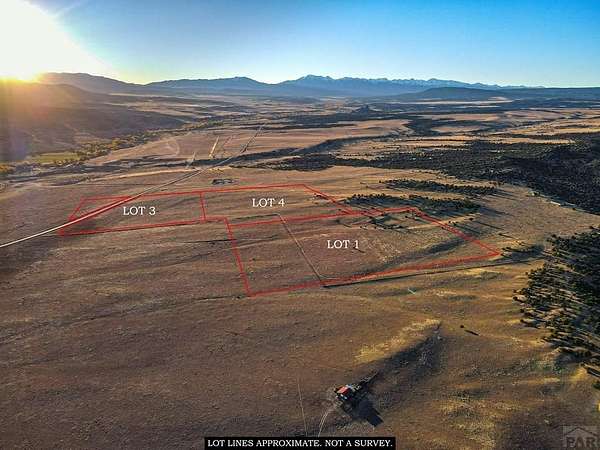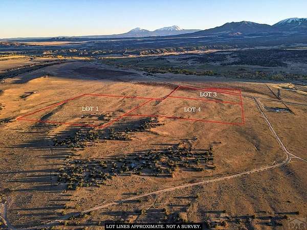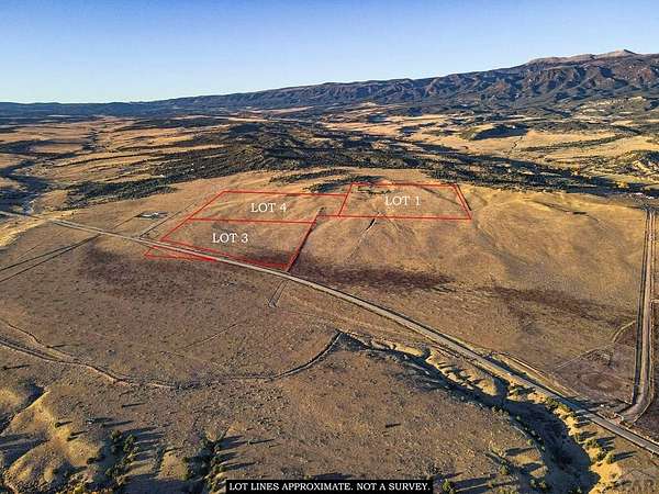 Mountain Views! Explore these 105 acres of versatile, open land in the heart of Huerfano County, This spacious, flat property provides the ideal canvas for those looking to immerse themselves in Colorado's natural beauty. With direct road access from Highway 69 your arrival couldn't be any easier. One of this property's outstanding features is the breathtaking mountain view that greets you daily. Imagine every morning beginning with an inspiring panoramic view of the mountains in the distance. Whether you're using the land seasonally or building for long-term use, imagine unwinding under Colorado's dark, unpolluted skies, with no interruptions to the incredible landscape around you. A benefit is that lot #1 backs up to the BLM, where you can enjoy hiking, hunting and recreation from your back door. Electricity is at lots #3-4 making it easy to have the modern comforts while still enjoying your wide open space. For those seeking both convenience and a rural lifestyle.