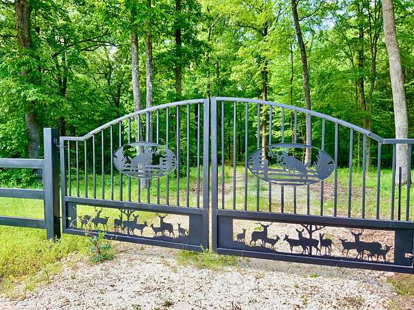 As you arrive, you'll be welcomed by a custom metal entrance gate featuring striking whitetail deer artwork -- a fitting symbol for a property where nature, wildlife, and open land meet in harmony. The land rolls gently across a mix of open pasture, mature hardwood timber, and a spring-fed pond, offering a serene and highly usable landscape.