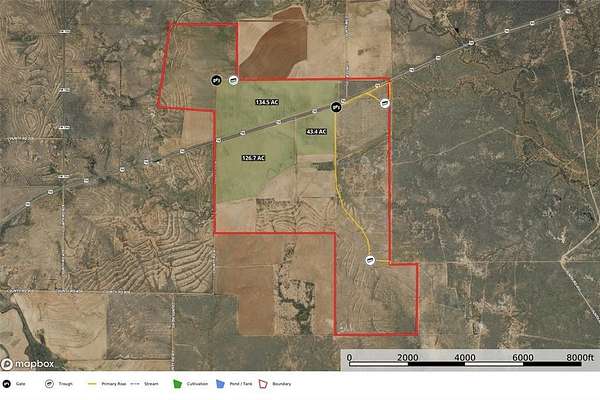 Crump Flat Farm and Ranch is located near Paducah, TX in Cottle County on US 70. 1,136 +or- total acres, with approximately 317 acres planted in cotton and another 80 acres of cultivated land usually planted to wheat or haygrazer. The balance of acres are improved grasses, with some brush and trees.