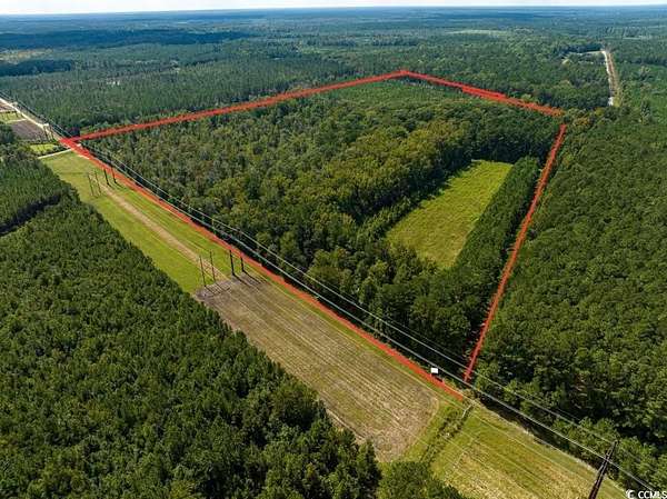 Est $5,080/moCommercial acreage at the intersection of HWY 701, Pleasant Hill Drive and Old Pee Dee Road. 57 acres with over 1500 ft highway frontage and another 1500 feet on side a side road. Halfway between Georgetown and Conway lend to many potential uses and the possibilities will multiply with completion of the southern evacuation lifeline. Mostly wooded with a 2.5 acre field. Images provided show conceptual or virtual ideas and potential uses.
