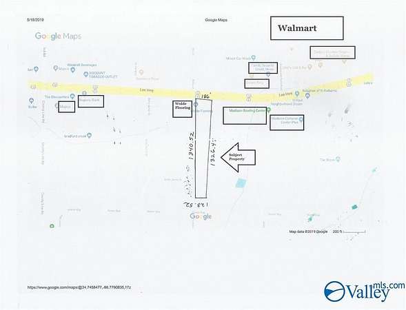 Est $12,683/moLOCATION!!! PICS COMING SOON! NOT ANNEXED INTO MADISON! Wonderful opportunity to build a business on a MAJOR HIGHWAY of Huntsville, Alabama. WATER & SEWAGE AVAILABLE! ANNEXED INTO CITY OF HUNTSVILLE! 3 FIRE HYDRANTS coming within 650 ft of each other. The Road Frontage is 186' by 1340.52 by 123.52 by 1326.47 and boasts traffic count of approx. 33,500 vehicles per day. Right next to Bowling Alley, Wolde Home Flooring, Across the street from Wal-Mart, Credit Union, Burger King, etc. Loopnet category is Retail (LN), Office (LN), Comm. 33,500 vehicles per day.